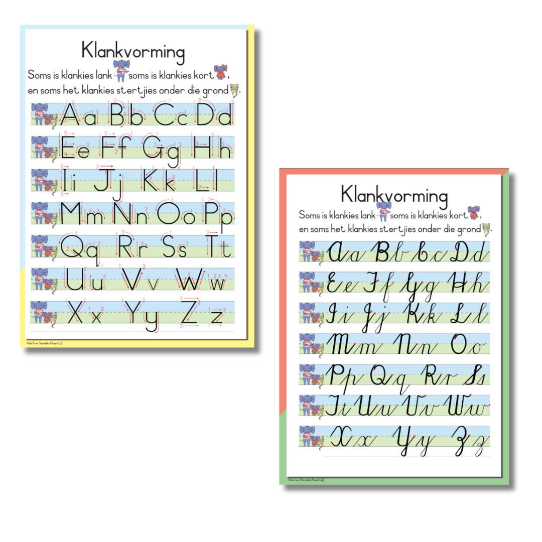 Die handskrifkaarte illustreer duidelik waar ’n klank begin en hoe om die klank te vorm. Dit word in die klaskamer teen die muur opgeplak sodat leerders voortdurend daarna kan verwys wanneer hulle besig is met ’n skryfaktiwiteit.
